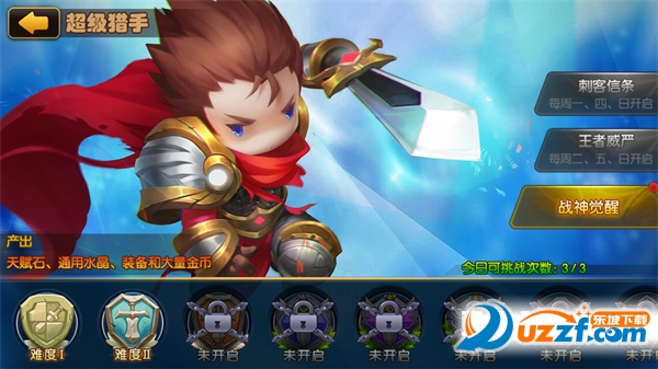 超級獵手,是對玩家英雄隊(duì)伍的高級考驗(yàn),產(chǎn)出珍貴的培養(yǎng)資源。如圖3,戰(zhàn)神覺醒,產(chǎn)出高級天賦石,高級裝備,通用水晶等。超級獵手的目標(biāo)敵人只有一個(gè),只要玩家殺死,就能取勝;但是目標(biāo)敵人旁,有強(qiáng)大的Buff怪存在,目標(biāo)不是這么輕易能被殺死的。超級獵手,每周開放的種類不同,不過周日三個(gè)玩法都統(tǒng)一開放了。大家記得周日,一定要登陸玩(否則要吃大虧!)