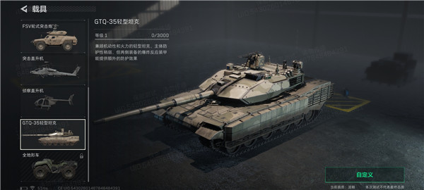 這次全面戰(zhàn)場(chǎng)還新增了一個(gè)坦克,GTQ35輕型坦克,主體防御性偏弱,兩側(cè)有爆炸反應(yīng)裝甲可以提供額外防御。