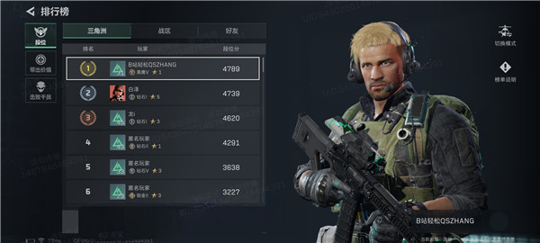 然后是排行榜功能,分為烽火地帶和全面戰(zhàn)場(chǎng)兩個(gè)模式,我覺得這個(gè)沒什么可說的,因?yàn)楹推渌螒蛞粯,屬于基礎(chǔ)功能。