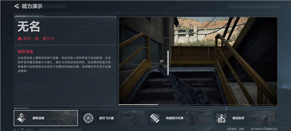 然后再說說無名的四個(gè)技能,分別是靜默潛襲、旋刃飛行器、突破型閃光彈、重傷延滯,說完了技能名稱,再來簡(jiǎn)單說說他的技能效果。