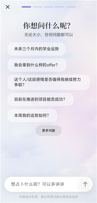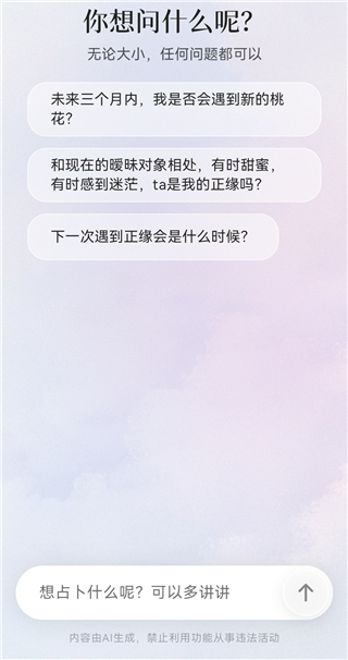 2、輸入你想占卜的問題,關(guān)于學(xué)業(yè)、事業(yè)、愛情的都可以。