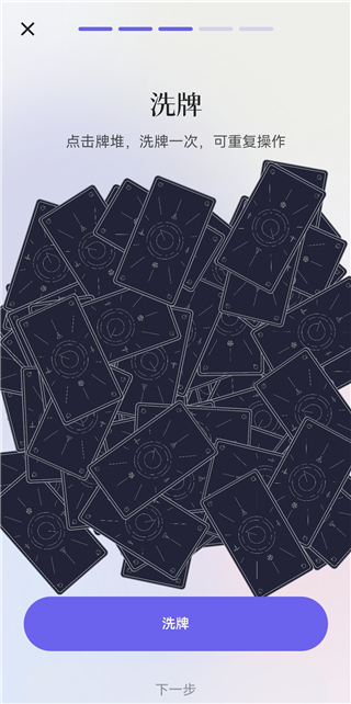 2、點擊牌堆或者下方【洗牌】可進行洗牌,可以重復(fù)操作,洗完牌后點擊【下一步】。