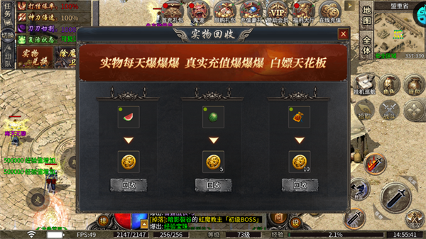 湊齊吸血+切割詞條,越級打BOSS,多余裝備掛拍賣行換元寶。