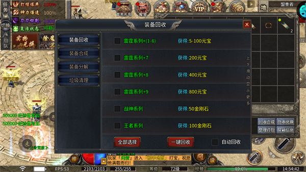 前期刷小怪攢神器碎片,優(yōu)先合成開天/屠龍,走戰(zhàn)狂流快速成型。