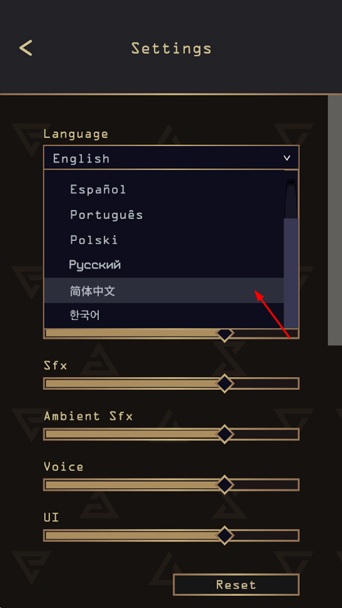 2、接著找到Language,點(diǎn)擊English旁的箭頭,下滑找到簡(jiǎn)體中文應(yīng)用即可。