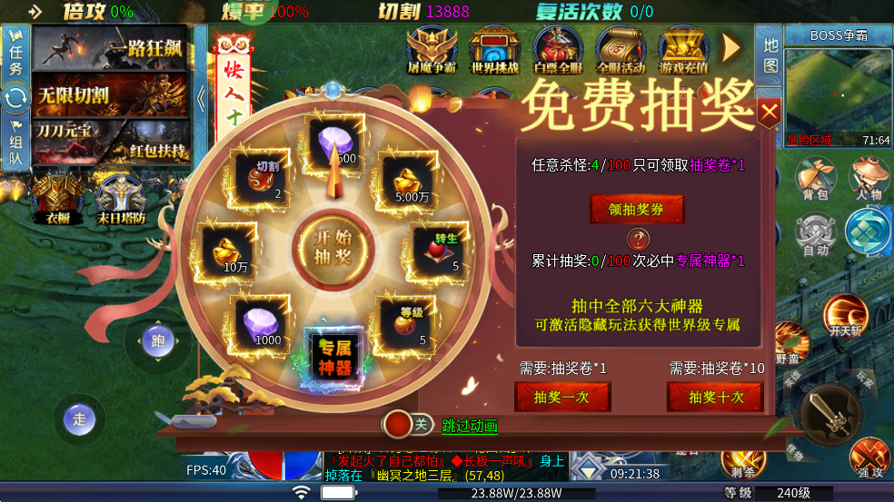 【雄霸天地-明月攻速無限刀】全民打金玩法,裝備保值貨幣暢銷,新人上線就送金卡玩家稱號,永久提升百分之五十爆率,還有絕版皮膚,和刀刀綠毒永久Buff,本服所有裝備都可以通過戰(zhàn)斗獲得,包括小怪也有爆率,還能通過殺怪獲得滿級贊助。