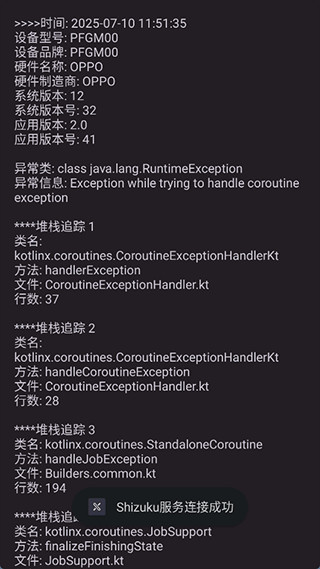 2、提示Shizuku服務(wù)連接成功后,會列舉你手機中各種游戲或應(yīng)用的進程信息