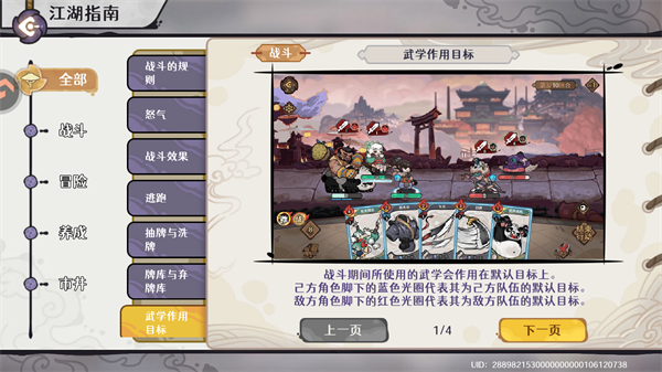 戰(zhàn)斗期間所使用的武學(xué)會(huì)作用在默認(rèn)目標(biāo)上。己方角色腳下的藍(lán)色光圈代表其為己方隊(duì)伍的默認(rèn)目標(biāo),敵方角色腳下的紅色光圈代表其為敵方隊(duì)伍的默認(rèn)目標(biāo)。